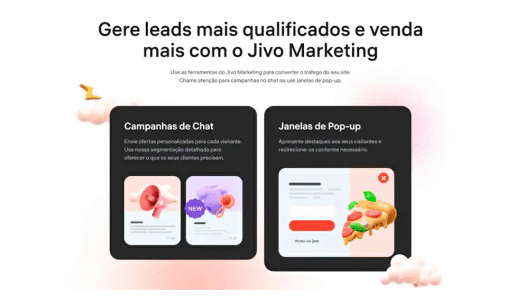 The platform also offers Jivo Marketing, a feature that allows you to create automated campaigns with interactive chat and smart pop-ups. This way, you can display targeted offers, collect strategic data, and engage visitors at the right time based on their browsing behavior.